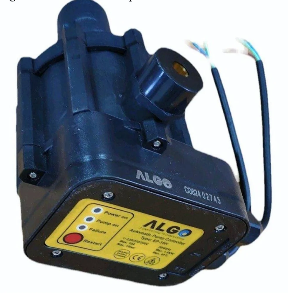 The ALGO EP 15H is an automatic pump controller designed to maintain consistent water pressure and protect your pump from dry running. It starts the pump when water pressure drops and stops it once the required pressure is reached. This model comes without a pressure gauge, offering a compact and economical solution for domestic and light commercial water systems.