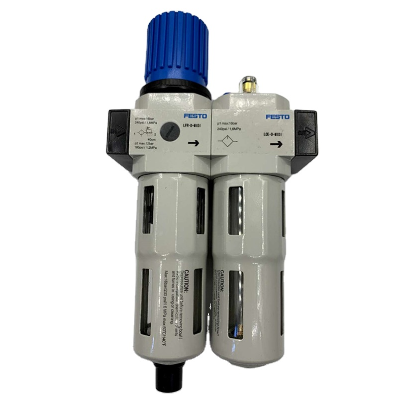 The Festo MIDI 1/4” FRL Unit is a high-quality Filter–Regulator–Lubricator assembly designed to provide clean, dry, and properly conditioned compressed air for industrial and automation systems. Known for its precision engineering and long service life, the Festo MIDI series ensures stable pressure, efficient filtration, and reliable lubrication for all pneumatic components.