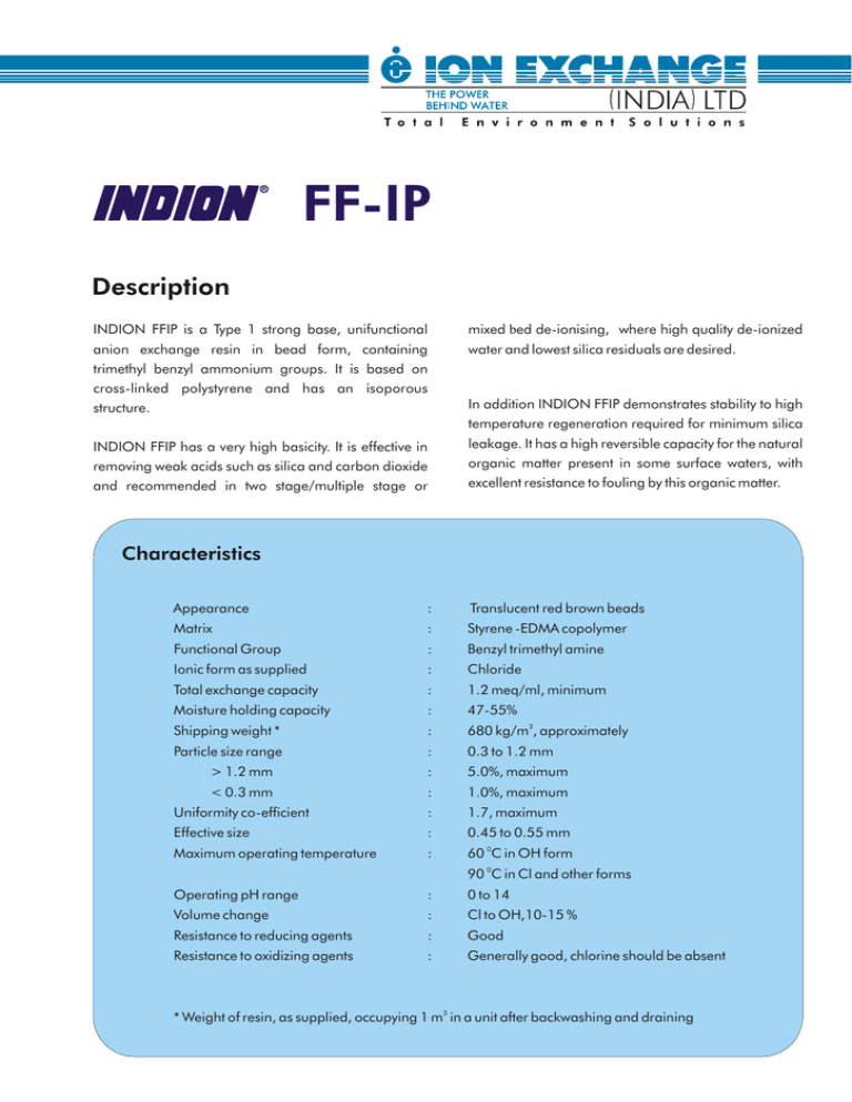 INDION FFIP-DM ANION EXCHANGE RESIN