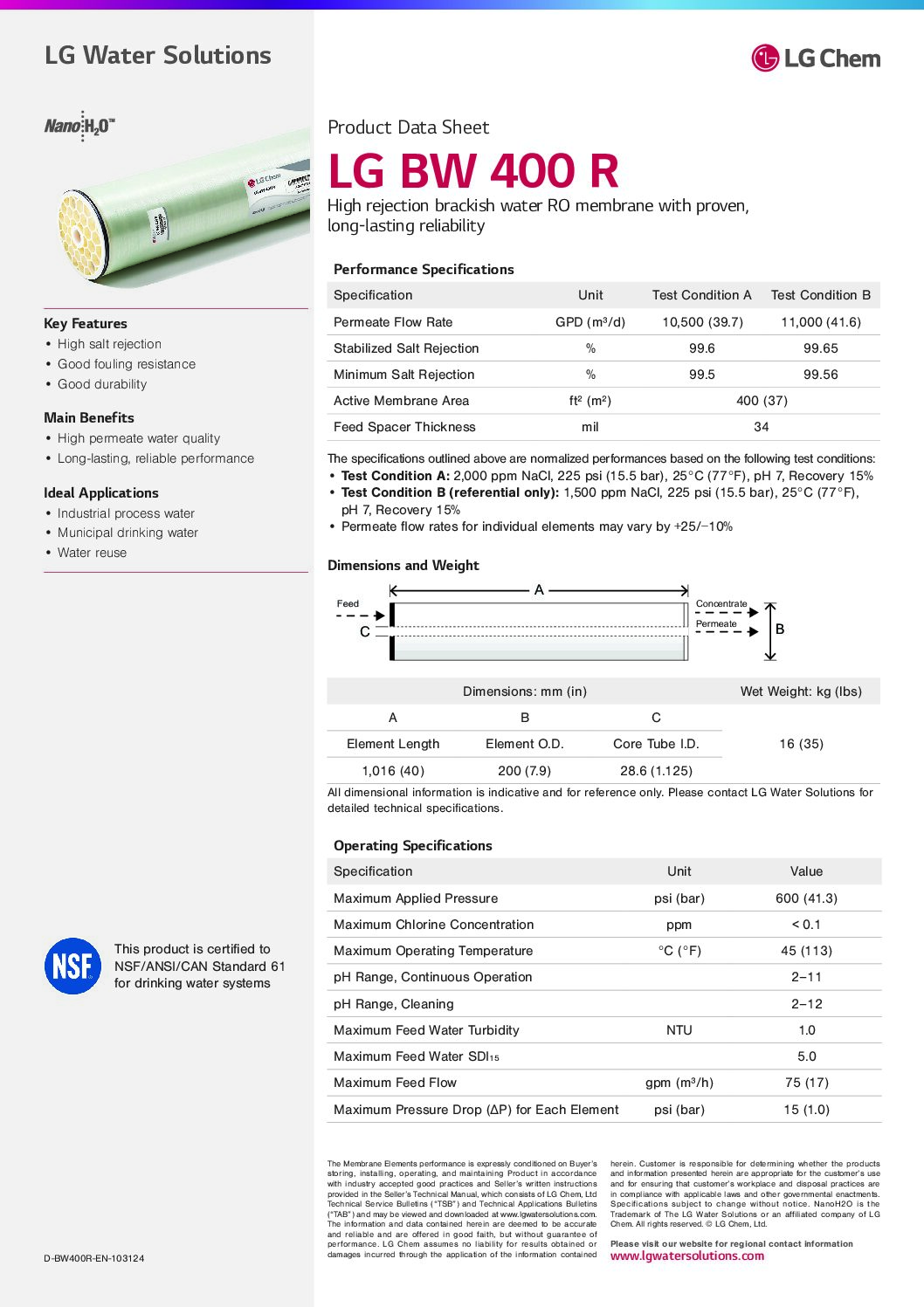 Be the first to review “LG RO MEMBRANE 8040 BW 400”