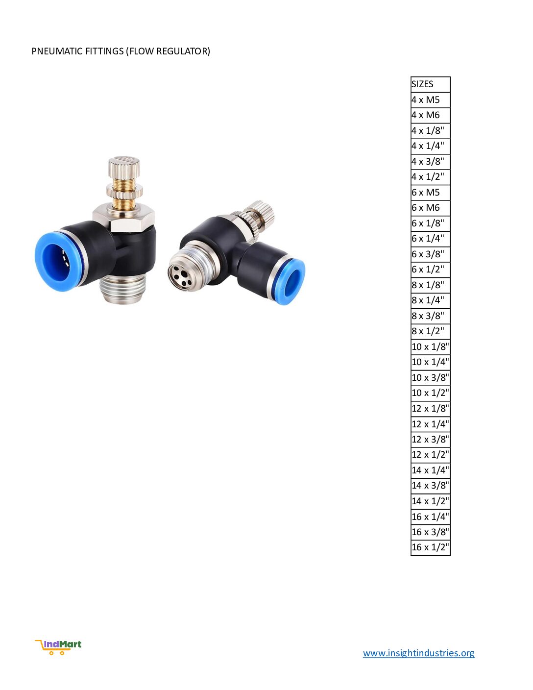 PNEUMATIC FITTING – FLOW REGULATOR