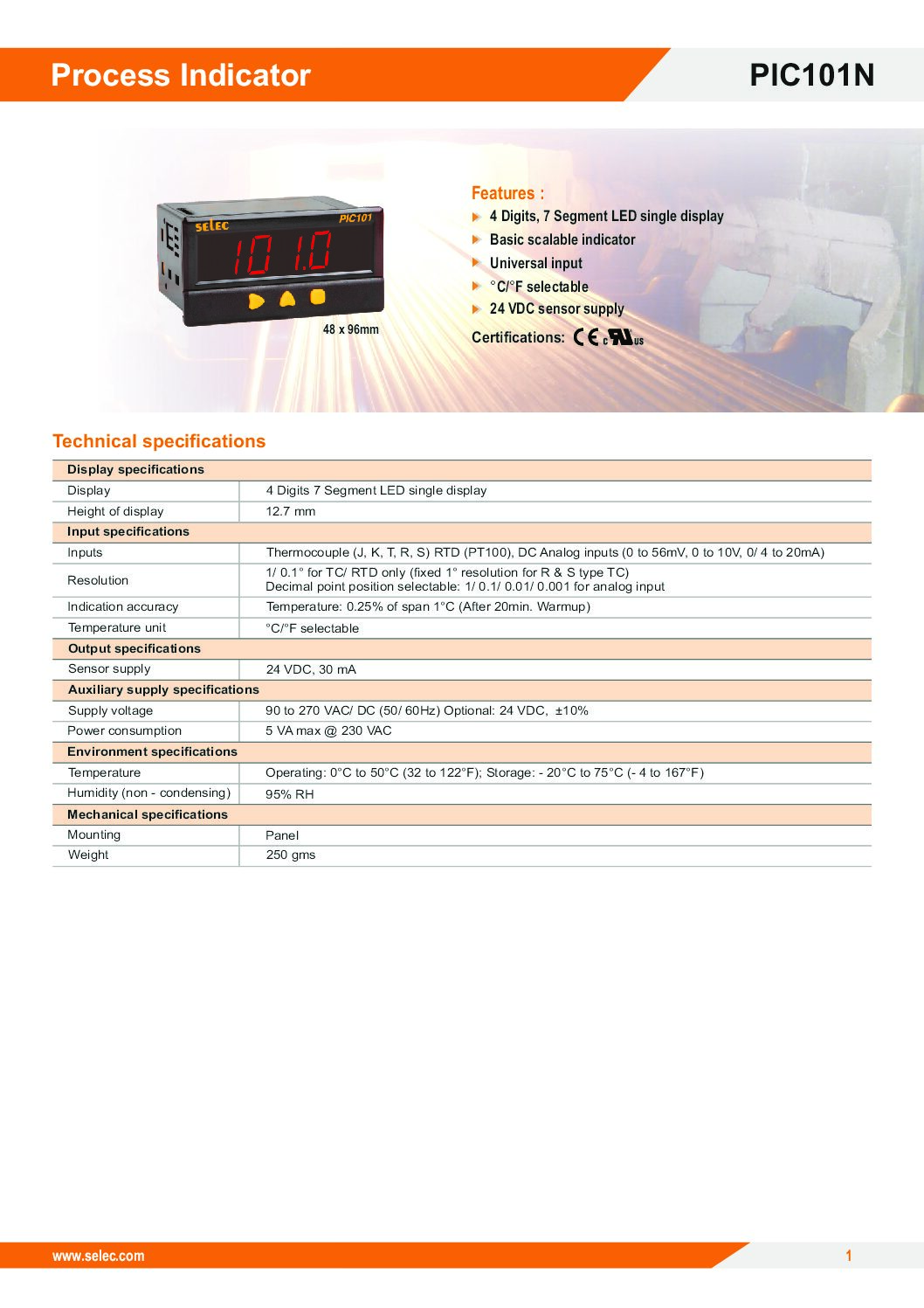 SELEC PROCESS INDICATOR – PIC101N