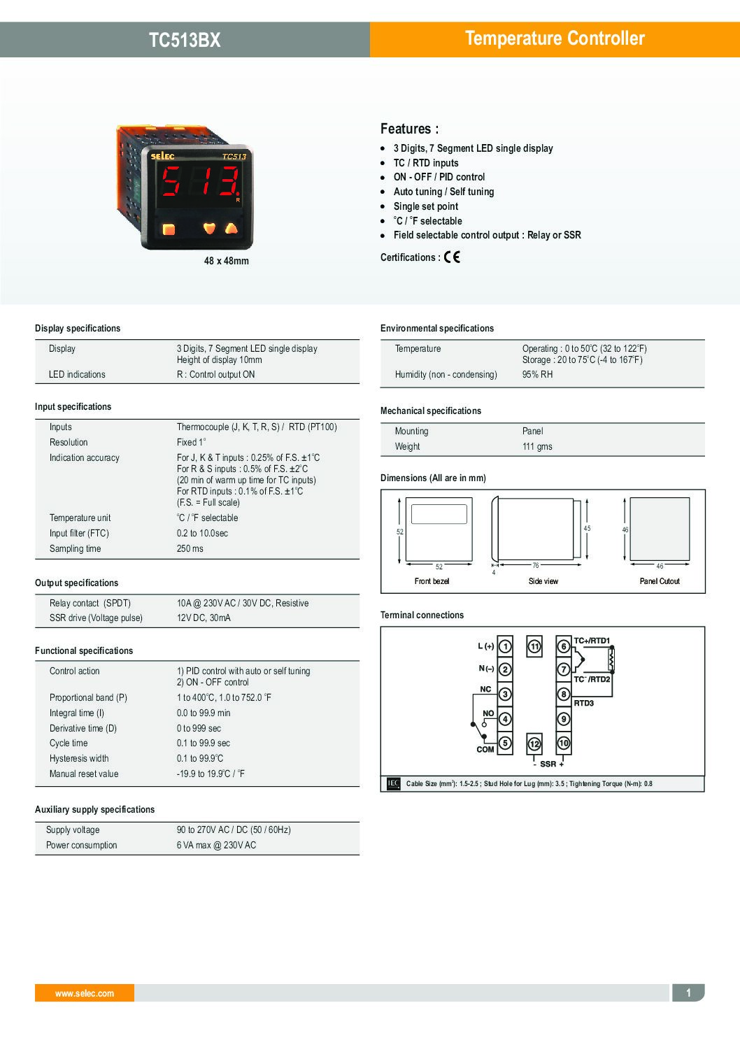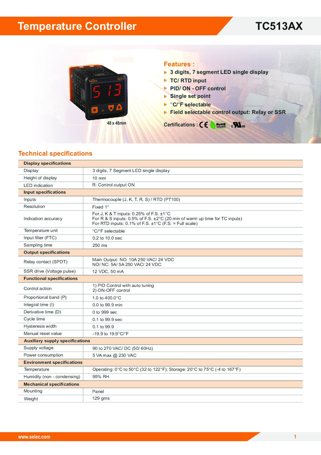 SELEC TEMPERATURE CONTROLLER – TC513AX /TC513BX