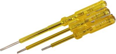 The Taparia Line Tester is a compact, reliable tool designed to safely check live electrical circuits. Available in models 813, 816, and 818, each tester features a bright yellow insulated handle and a high-grade steel blade with a built-in neon indicator, making it easy to detect live wires up to 500 V AC. Perfect for electricians, technicians, and DIY enthusiasts, this tester combines safety, accuracy, and portability.