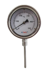 Industrial analog temperature gauge for high-temperature measurement applications.