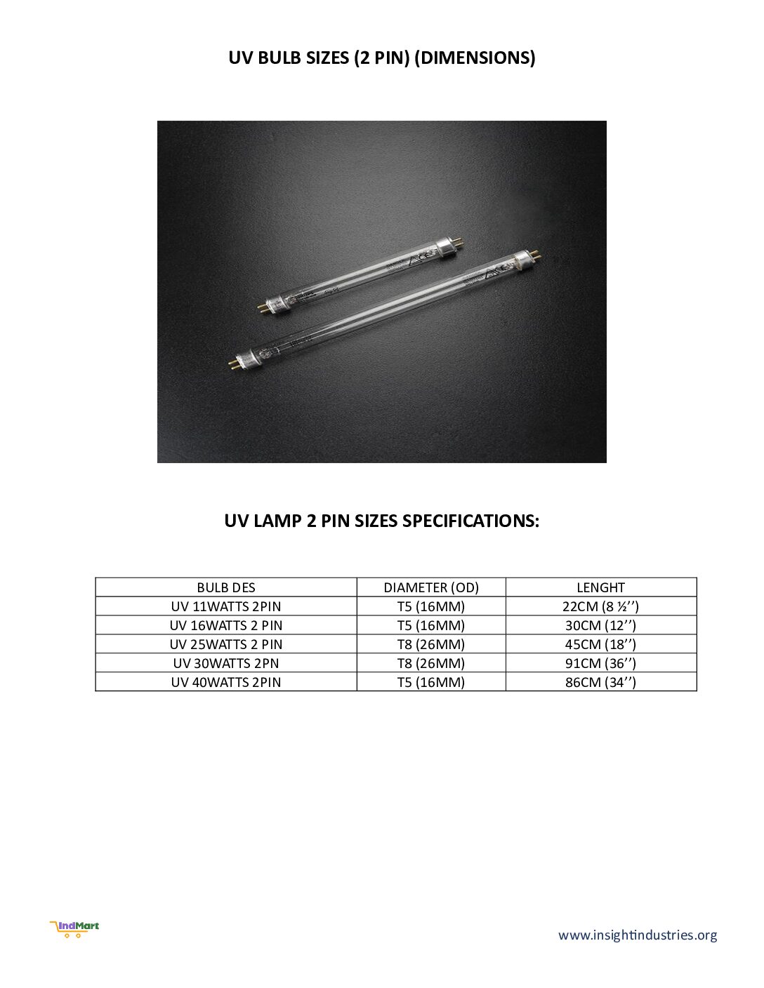 UV LAMP 2 PIN