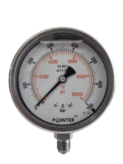High-pressure, durable gauge designed for accurate monitoring of demanding industrial, hydraulic, and water treatment systems. Built to ensure long-lasting performance and stability under extreme pressure conditions.